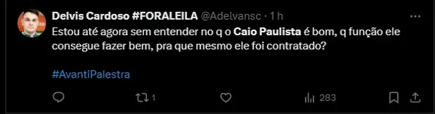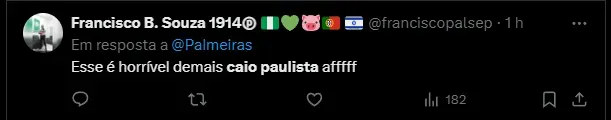 “Esse Caio Paulista é muito ruim“, criticou um torcedor. Outro também apontou o erro em colocar o atleta em campo: “o único ponto negativo da noite fica por conta de, mais uma vez, Abel Ferreira sacanear um jogador da base, Vanderlan. Lateral-esquerdo muito habilidoso, que sempre honrou as chances recebidas. Um absurdo passar o limitadíssimo Caio Paulista na frente dele“.