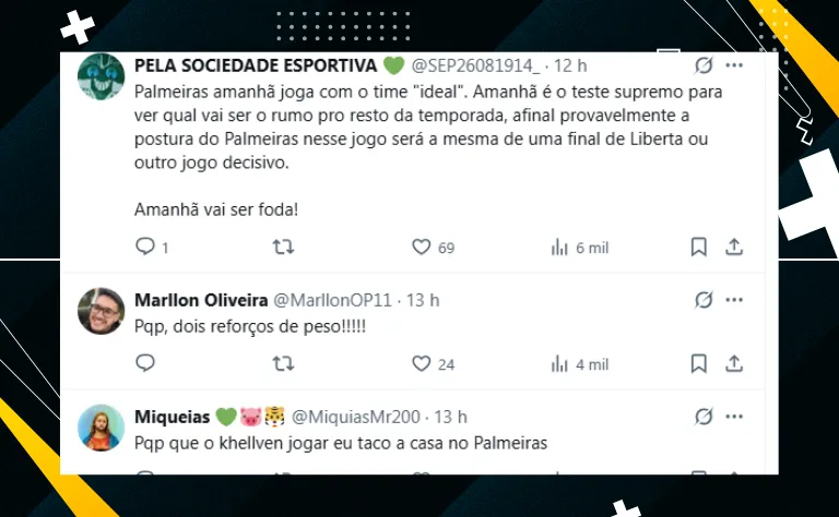 Torcida do Palmeiras exalta provável volta de Khellven contra o Flamengo