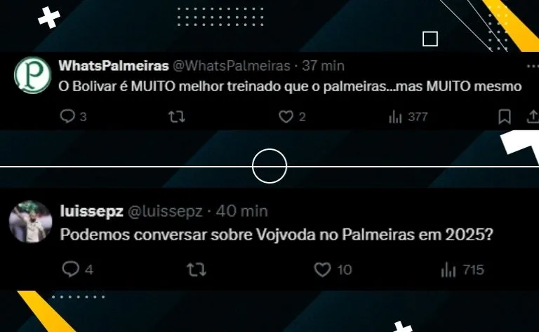 “Bolívar pode até perder de 2 ou 3 gols, mas tem mais atitude do que o Palmeiras, eles já tiveram mais chance de fazer gol do que Palmeiras, que não deu nem um chute no gol”, publicou outro palmeirense.