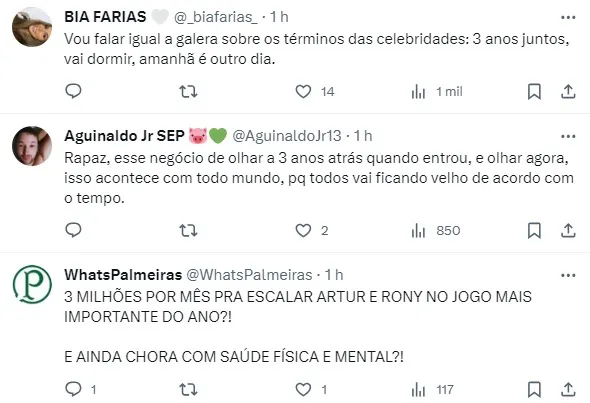 Abel também ligou um alerta na torcida do Palmeiras ao deixar em aberto seu futuro: “Foi o que nos fez em três anos ter muito cabelo branco, muitos exames feitos para entender o que se passa no coração. Períodos difíceis de saúde mesmo, não só física como mental. Já falei no último jogo e as pessoas não querem saber disso. Resta pensar muito bem sobre o que quero. Futebol aqui não dá saúde a ninguém. Olhem para mim agora e olhem há três anos. Alguma coisa vai ter que mudar”, disse.
