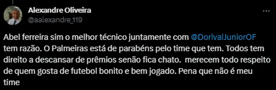 “Palmeiras ficou muito tempo sem vencer pelo elenco que tem. O ano do Palmeiras foi uma grande decepção mesmo com a conquista de dois títulos. São títulos pequenos para o elenco que o Palmeiras possui”, disse Mano.