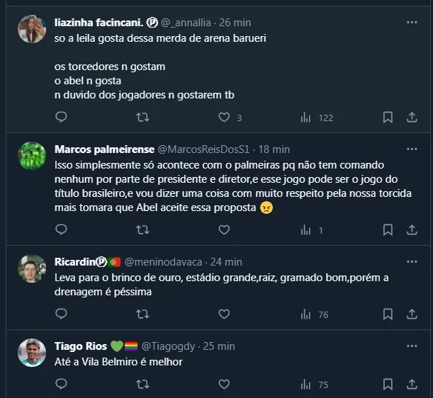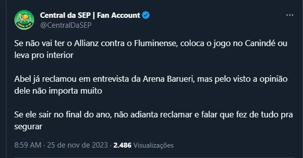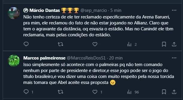 Entretanto, vale frisar que Abel Ferreira já reclamou bastante do local e parece não gostar de mandar partidas por lá. Até por isso, torcedores sugeriram outros estádios para o duelo, criticando muito Leila Pereira por não ligar para as reclamações do português.