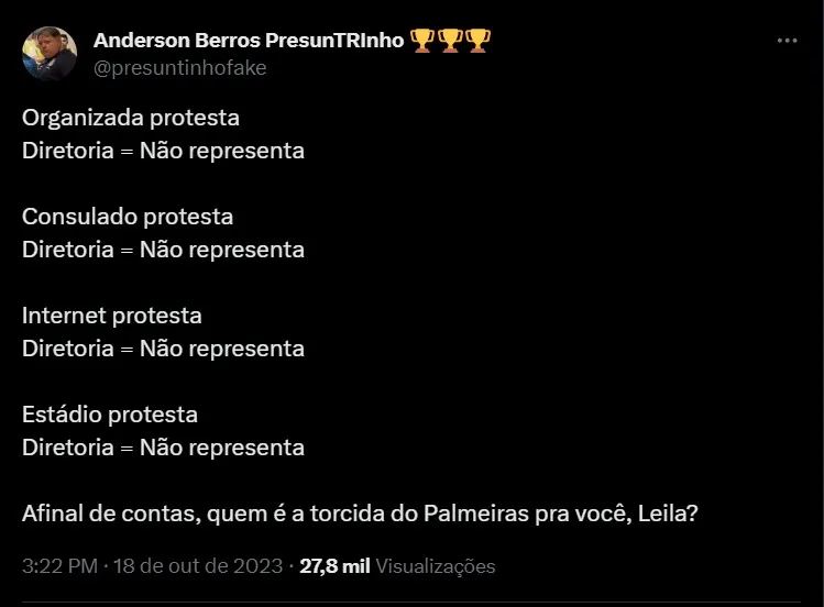 Situação no Palmeiras vem gerando incômodo na torcida que resolveu se manifestar