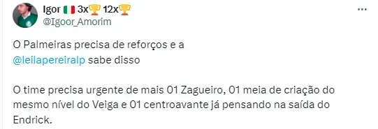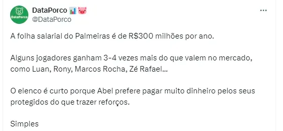 O profissional ainda revelou qual é a projeção palmeirense para as próximas aquisições. A informação é que a tendência é que a diretoria ultrapasse o incrível valor de R$ 100 milhões em reforços.
