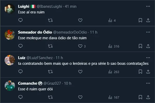 Com isso, de olho em montar uma equipe com experiência no torneio, o Santos se acertou com o jogador e deve anunciá-lo oficialmente nos próximos dias. O assunto chegou ao torcedor do Palmeiras, que resolveu comentar a chegada de Marcelinho no rival.