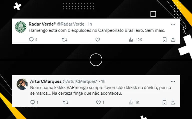 Nas redes sociais, os torcedores estão comentando. No lance de Pulgar em cima de Ríos, um internauta comentou: “Como que isso não é expulsão, mano?” em tom de indignação.
