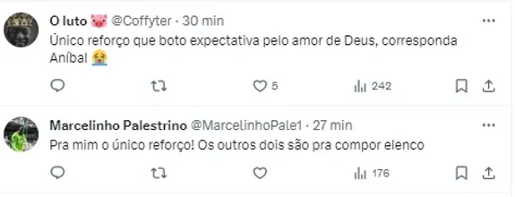 Agora, assim como Abel e Aníbal, a torcida alviverde está ansiosa para a estreia do jovem jogador que demonstrar estar bastante animado para iniciar a sua estadia no Alviverde Imponente.