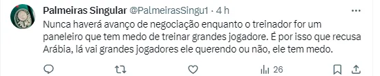 Porém, segundo ela, o Alviverde Paulista não avançou na negociação, por enquanto. Existe a possibilidade do Verdão entrar no páreo, mas por enquanto Flamengo e Corinthians seguem como favoritos para contratá-lo.