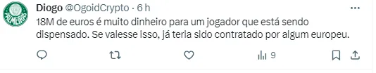 O jogador de apenas 23 anos vem tendo o seu nome em alta nos noticiários, já que vem sendo disputado pelas duas equipes. Tanto o time carioca, quanto o maior rival do Verdão teriam enviado propostas para contar com ele em 2024.