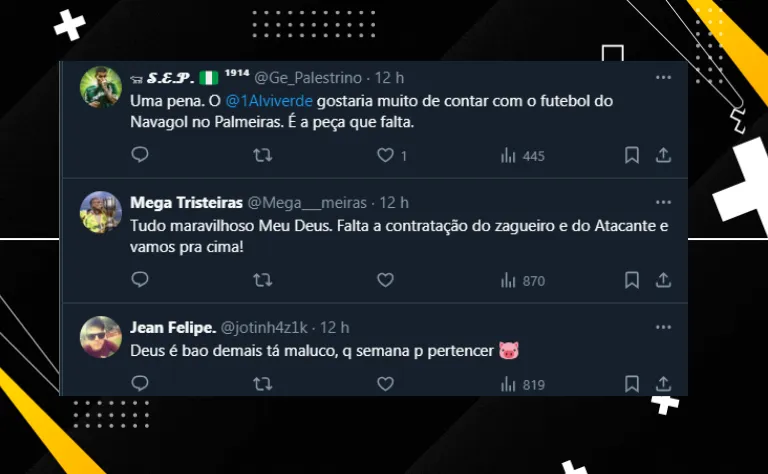 Até por isso, com o anúncio da iminente venda de Navarro, vários torcedores do Palmeiras foram às redes sociais e “comemoraram” o fato dele não voltar a vestir a camisa verde e branca.