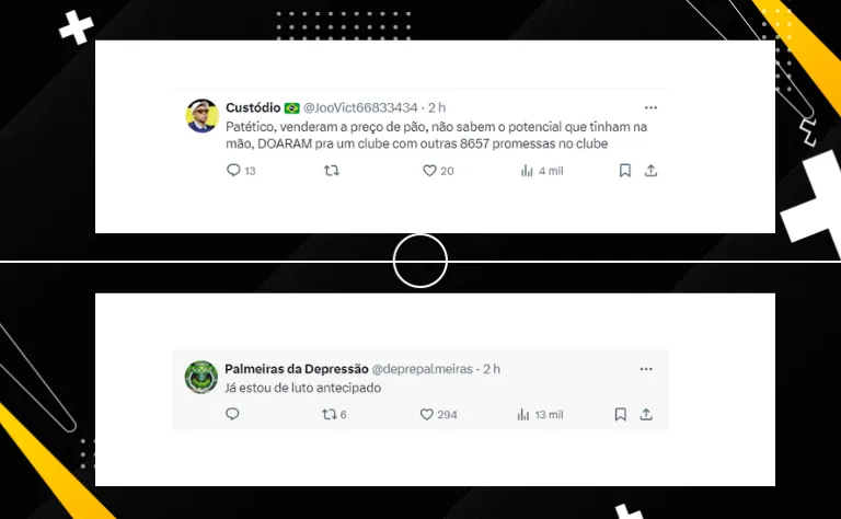 O Palmeiras, por sua vez, anunciou assim a venda de Estêvão: “A Sociedade Esportiva Palmeiras informa que concluiu acordo com o Chelsea-ING para a transferência do atacante Estêvão”, começa o texto.