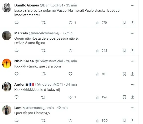 Nas redes sociais, o atitude do atacante virou piada nas redes sociais: “Kkkkkkkkkkkkkkkkkkkkkkkkk o melhor entretenimento nessa temporada, o deyverson!“, disse um torcedor no X, antigo Twitter.