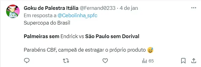 A transferência causou revolta no Morumbi, colocando o jogador como ‘judas’ ao pular os muros da Barra Funda. Com certeza, esse será mais um ingrediente para a Supercopa do Brasil.