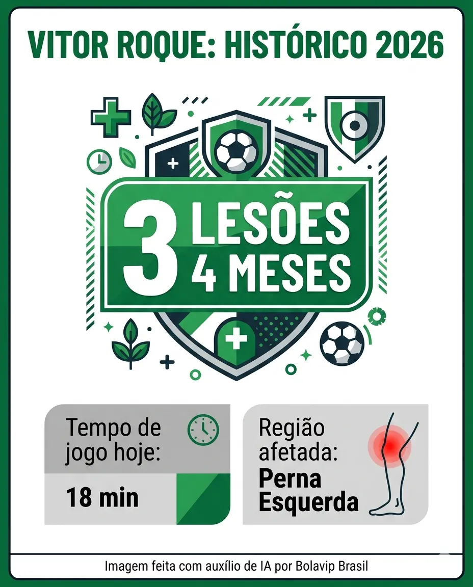 E mais uma vez Vitor Roque virou problema no Palmeiras. O atacante iniciou como titular a partida contra Jacuipense, pela ida da quinta fase da Copa do Brasil, mas foi substituído aos 18 minutos após se lesionar.