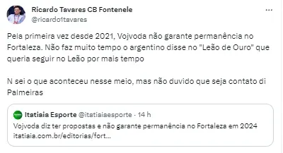 Ele comentou que já teve conversas com a diretoria do Fortaleza. “Falamos sobre o que necessita o Fortaleza. E a partir daí, dessa conversa, necessito desse tempo para planejar. Planejo com minha família. Ano passado aconteceu algo similar”.