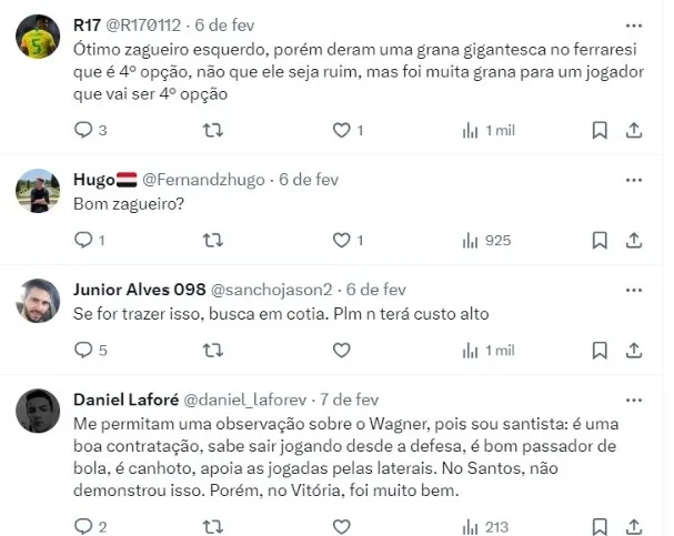 “É um jogador interessante, construtor, uma posição que precisamos olhar com carinho para sair com a bola lá de trás. Quando é canhoto já tem meio caminho andado, facilita muito para buscar a ala, o lateral”, afirmou em entrevista ao canal Nilson César.