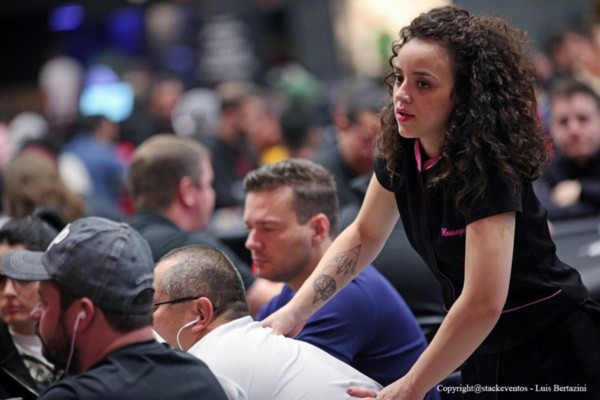Jogador fazendo massagem durante etapa do BSOP (Foto: Luis Bertazini)