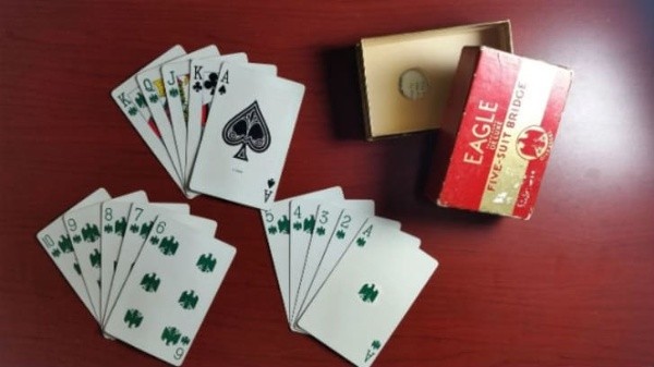 No final da década de 1930, a United States Playing Card Company foi um dos vários fabricantes a lançar um baralho de 65 cartas. Nele além das 13 cartas de cada naipe tradicional constavam outras 13 no naipe da águia, impresso em verde ao invés de vermelho ou preto. Na Inglaterra o quinto naipe usava um símbolo de coroa e era azul.