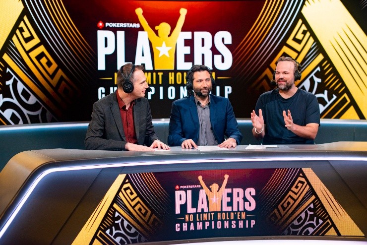 James Hartingan, Joe Stapleton e Griffen Benger na transmissão global do PSPC (Foto: Joe Giron/PokerStars)