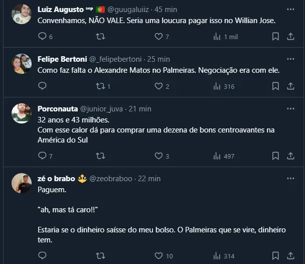 Dito isso, um dos jogadores que surgiram no radar do Palmeiras nos últimos dias foi Willian José, centroavante do Real Bétis, também da Espanha. No Brasil, atuou por São Paulo, Grêmio e Santos.