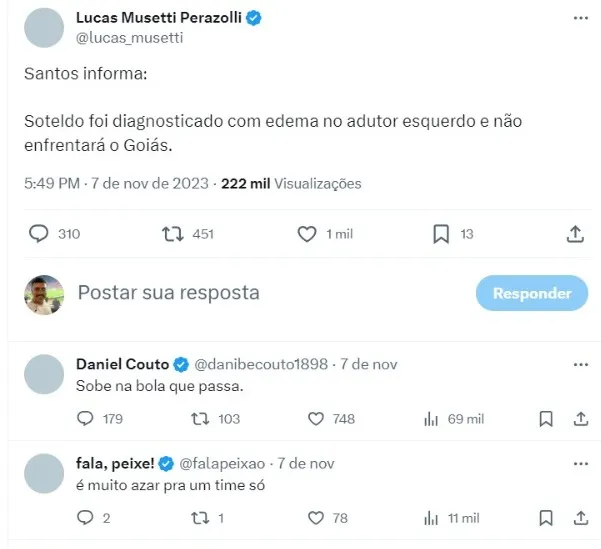 Com a informação, diversos torcedores do Peixe ficaram preocupados com a possibilidade dele até perder o restante da temporada, mas o jornalista César Luis Merlo trouxe uma atualização animadora.