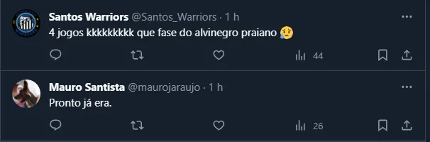 Vale frisar que, após Marcelo Fernandes assumir o comando do time, o Santos chegou a engatar três vitórias seguidas, contra Bahia, Vasco e Palmeiras. No entanto, sofreu duas derrotas dolorosas na sequência.