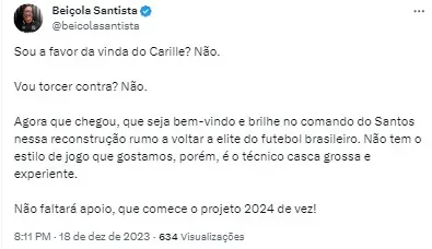 O Santos está se preparando para disputar o Paulistão e a Série B em 2024. Após muita negociação, possíveis reviravoltas, de forma oficial: Fábio Carille é o novo treinador santista.