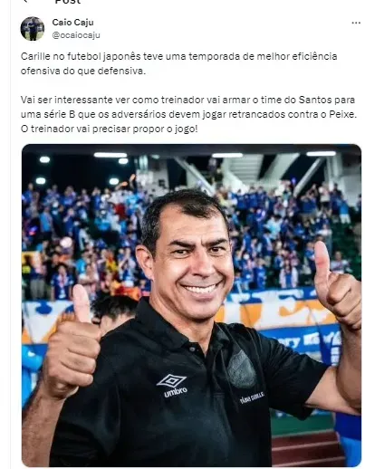 O treinador já se encontra em São Paulo, por isso estará em Santos em poucas horas. Carille estava no V-Varen Nagasaki, do Japão, diante disso, o Peixe teve que pagar a multa rescisória dele para acertar a negociação.
