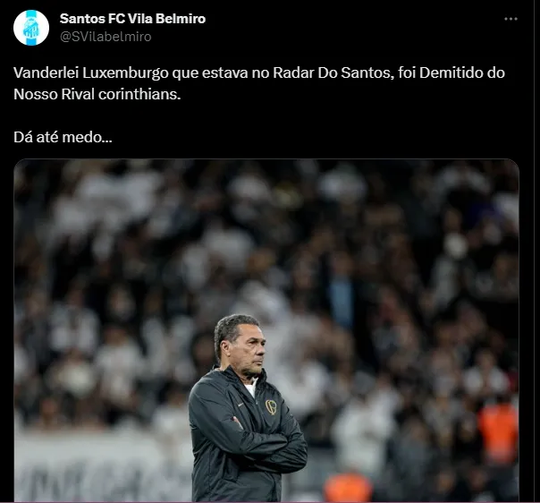Um dos treinadores cotados para dirigir o Santos é Vanderlei Luxemburgo. Luxa, inclusive, foi demitido do Corinthians nesta quarta-feira (27), um dia depois do empate por 1 a 1 contra o Fortaleza, pela Copa Sul-Americana; Sendo assim, o treinador, que tem passagens vitoriosas pelo Peixe, está livre no mercado da bola e pode assumir qualquer time sem que precise pagar uma multa para outra equipe.