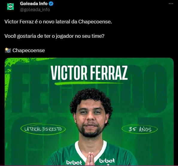 É o caso do lateral-direito Victor Ferraz, que jogou por cinco temporadas pelo Santos, entre 2014 e 2019. O jogador estava na campanha do Náutico na Série C e agora foi anunciado como o novo reforço da Chapecoense para a sequência da Série B do Campeonato Brasileiro. A Chape confirmou a realização do negócio na tarde desta quarta-feira (6).