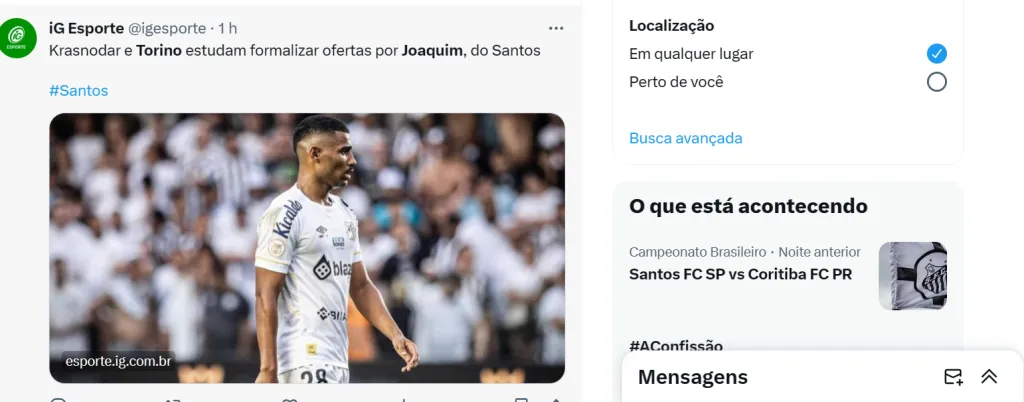 E por falar no zagueiro, dirigentes do Krasnodar, da Rússia, compareceram à Vila Belmiro para observarem a vitória do Santos. Obviamente que Joaquim foi o centro das atenções, porém o clube do Leste Europeu sabe que o Alvinegro só vai abrir negociações após as eleições presidenciais, em dezembro. O beque tem contrato até o fim de 2026.