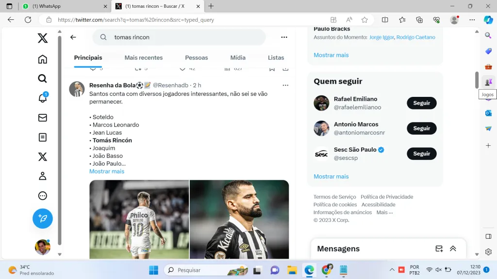 De fato, haverá um ‘desmanche’ no quesito de várias saídas do elenco, mas, de momento, o Santos não recebeu propostas por Rincón, que tem contrato na Vila Belmiro até dezembro de 2024.