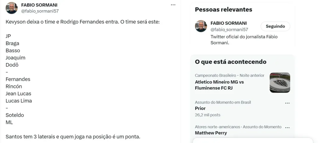 Você concorda com a mudança de esquema tático de MF para o Santos?