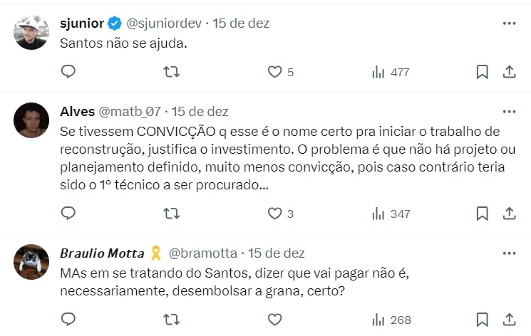 Entendendo a situação financeira, o comandante entende que será necessário um choque de realidade nos bastidores. Isso porque, a equipe paulista contava com bons jogadores no elenco, mas em campo não correspondiam da mesma forma.