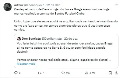 Além disso, foi divulgado nova situação envolvendo Lucas Braga. Segundo o UOL, com a chegada de Fábio Carille, o Peixe pode descartar a possibilidade de saída do jogador.