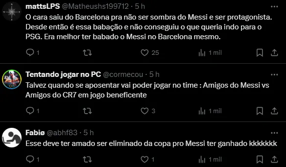 Isso porque Ney revelou que quer voltar a atuar com Messi no futuro. A dupla fez uma grande parceria nos tempos de Barcelona e também no PSG. Atualmente, o argentino está no Inter Miami, dos Estados Unidos.