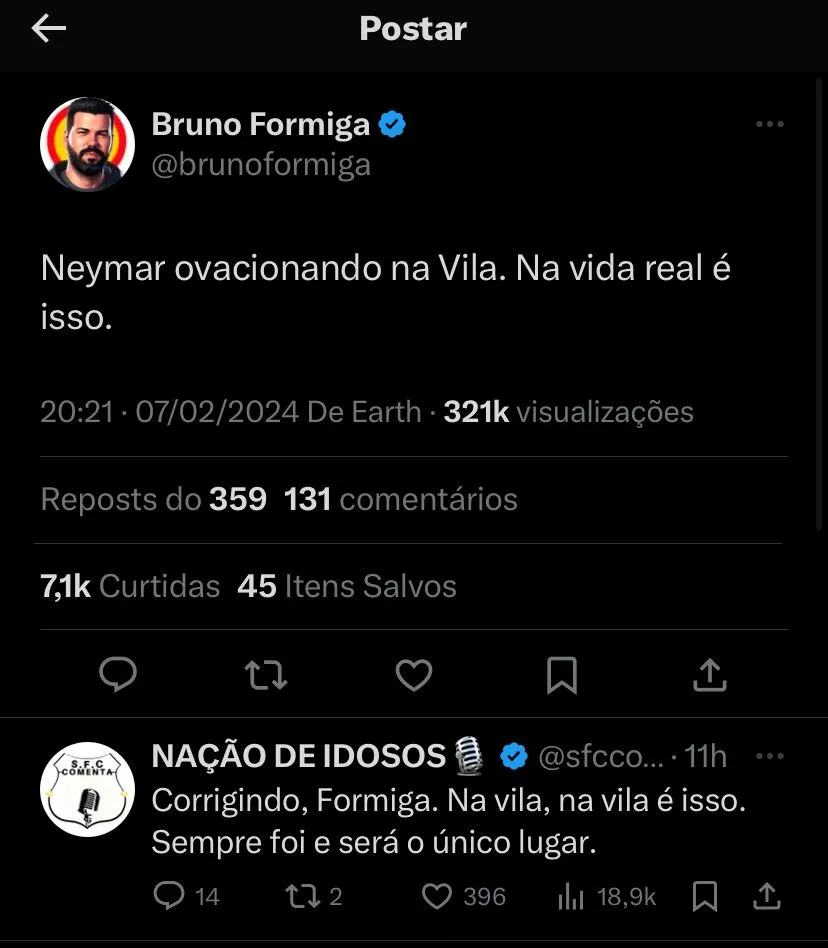 Veja o que dizem os torcedores do Santos: