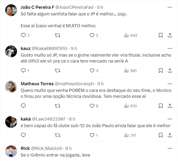A gestão então analisou que é importante ir ao mercado para buscar um arqueiro que tenha condições de brigar por titularidade na posição. O nome de Marcelo Grohe, de 36 anos, ganhou força nos bastidores da Vila.