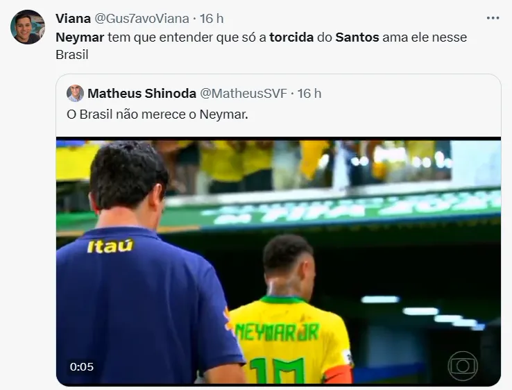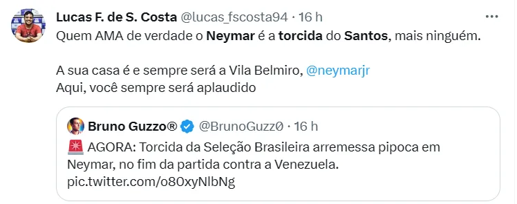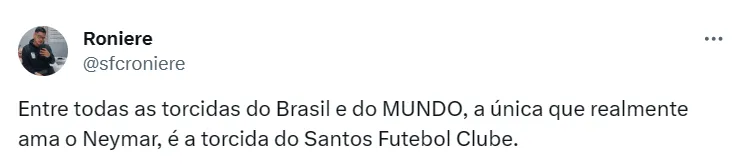 Outro ponto que vem sendo visto há um tempo é a reaproximação de Neymar com o Santos, seu clube formador. O craque do Al-Hilal e da Seleção Brasileira vem fazendo menções ao Peixe em suas postagens nas redes sociais, além de ter visitado a Vila Belmiro recentemente. No entanto, o amor ao camisa 10 no Brasil parece ser somente da torcida santista.