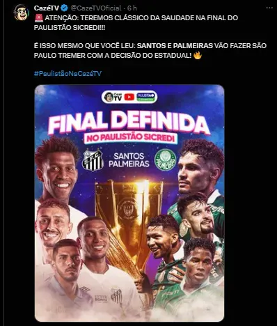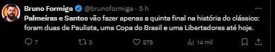 Ele reforçou que o Santos está muito bem montado e treinado e relembrou a fala de Carille sobre a ambição de buscar essa taça logo no começo do ano. “É uma equipe muito bem montada, com jogadores experientes. Ela é uma equipe melhor que a do ano passado. O treinador deles já disse que chega à final para ganhar, a ambição é essa. Uma final em dois jogos”, encerrou o português.