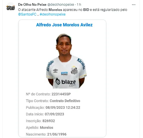 Isso porque o nome do atacante apareceu no BID (Boletim Informativo Diário) da CBF e com isso toda a burocracia pendente não existe mais. Segundo o Globo Esporte, Morelos deve, inclusive, ser titular já na próxima partida, visto que a equipe precisa, desesperadamente, pontuar para assim tentar deixar a zona da degola.