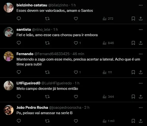 “Estou feliz de estar voltando. Tenho pré-contrato com o Santos, mas acabei de chegar no Brasil. Vou curtir as minhas férias. Ainda não sei o que pode acontecer, mas estou feliz. Agora é esperar para ver o que vai acontecer”, havia dito Pituca, em entrevista à Trivela.