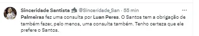 Um outro assunto que chama atenção no Santos é sobre uma equipe brasileira interessada no zagueiro Luan Peres, nome identificado com o Peixe. O jogador teve uma passagem na Vila Belmiro e, agora, entrou na mira de um rival do Alvinegro Praiano e tricampeão da Copa Libertadores da América. De acordo com as informações do site Nosso Palestra, o Palmeiras chegou a fazer uma consulta pelo zagueiro.