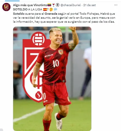 Ainda segundo o Fichajes.net, a diretoria da equipe espanhola teria recebido algumas informações sobre valores em caso de um possível negócio. A apuração dá conta de que para negociar Soteldo, o Santos toparia um valor de 5 milhões de euros (quantia que corresponde aproximadamente a R$ 27 milhões na conversão da moeda atual).