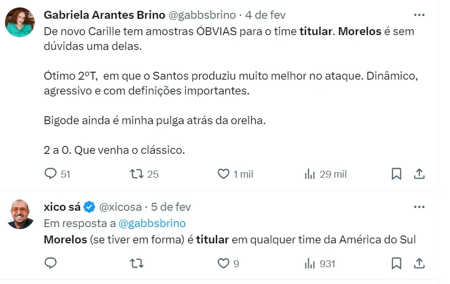 Com isso, a provável escalação do Santos deve ser: João Paulo; Aderlan, Gil, Joaquim e Felipe Jonatan; João Schmidt e Diego Pituca; Cazares e Otero; Guilherme e Morelos.