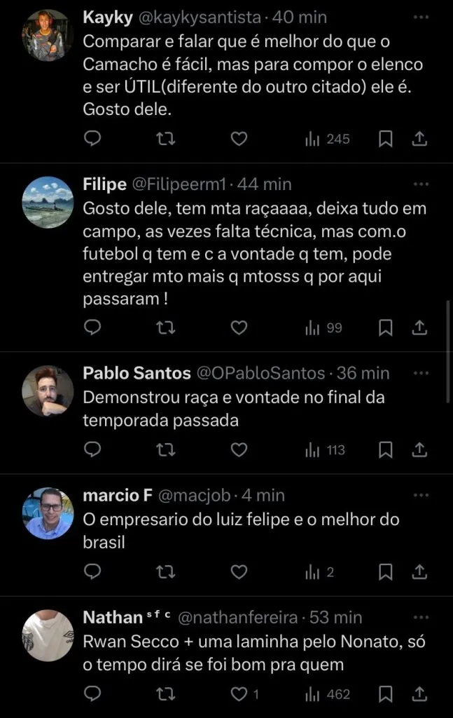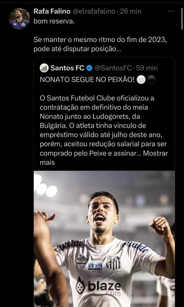 Com o anúncio da permanência, a torcida santista vibrou na web: (SIC)“Gosto dele. Tem que ser utilizado que é o típico jogador que precisa de ritmo de jogo para mostrar seu futebol. Vamos, Nonato!”; “Vai ser muito útil. Longe de ser craque mas é bom jogador.”; “Bom reserva! Se manter o mesmo ritmo do final de 2023 pode até disputar posição”, foram alguns dos comentários.