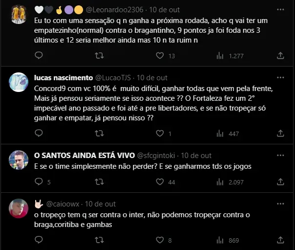 No entanto, apesar de poder trazer consequências para o futuro, o próximo compromisso não será afetado. Isso porque o julgamento acontecerá no mesmo dia da partida contra o Bragantino, na próxima quinta-feira (19). Quer dizer, ao menos nesta peleja, o apoio dos torcedores poderá ocorrer normalmente. Vale frisar que, em caso de vitória, o Peixão chegaria ao quarto triunfo seguido pela primeira vez no Brasileirão.