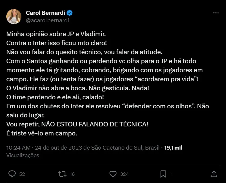 Santos vem de duas derrotas consecutivas no Campeonato Brasileiro e atualmente é 18º colocado com 30 pontos. Sob o comando de Marcelo Fernandes, a equipe paulista sofreu uma goleada humilhante do Internacional, no Beira Rio, por 7 a 1, que acabou gerando ainda mais desconfianças no elenco. Já que o goleiro Vladimir foi bastante criticado nas redes sociais. Com isso, o atleta vem passando por uma reavaliação interna.