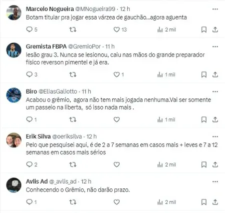 De acordo com o jornalista Diogo Rossi, “Soteldo tem uma lesão no adutor informa o médico do Grêmio, Paulo Rabaldo. Exames darão diagnóstico de tempo”, publicou nas redes sociais, informação a real situação.