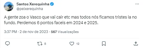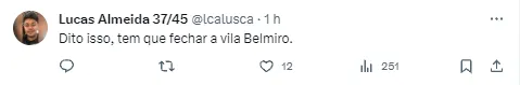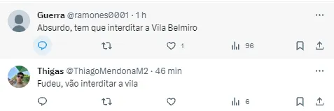 Isso porque torcedores do Santos fizeram piada com o acontecido, brincando que a Vila Belmiro seria fechada após o incidente. Os alvinegros não tiveram nenhuma relação com a confusão, o que só marca o tom cômico dos comentários.